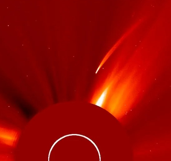 Comets with tails have the tail streaming vertically upwards with the body of the comet pointing down to the earth just before they recede away from the earth and become invisible.